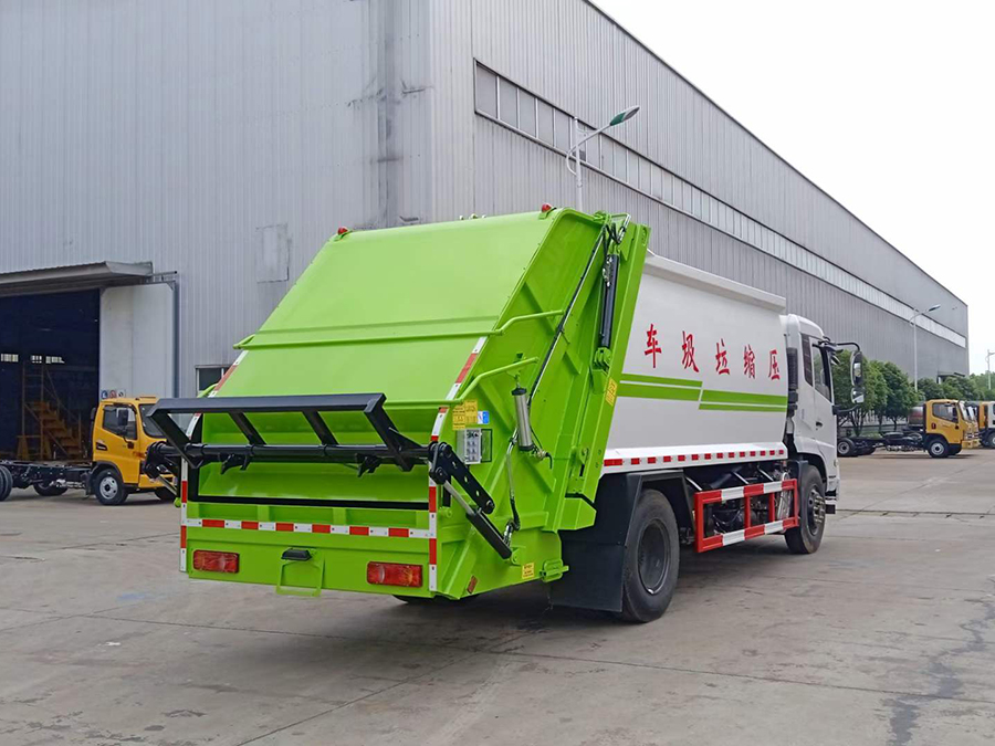 上裝配置:箱體有效容積14立方米,外觀為圓弧流線性造型,底板整體折邊無焊接,杜絕了泄漏風險。威森博樂多路閥,徐州全球通液壓油鋼管,多路閥處硬鏈接,整齊美觀,散熱快,工作效率高,標配壓實閥,有效增加垃圾密實度,增加裝載量。采用CAN總線智能控制系統(tǒng),具備手動、自動、半自動三套操縱方式,駕駛室內部、箱體前部、箱體后部均可操作,并配備遠程遙控器,可全方位不同的作業(yè)環(huán)境,方便高效,尾部帶翻轉上料機構。