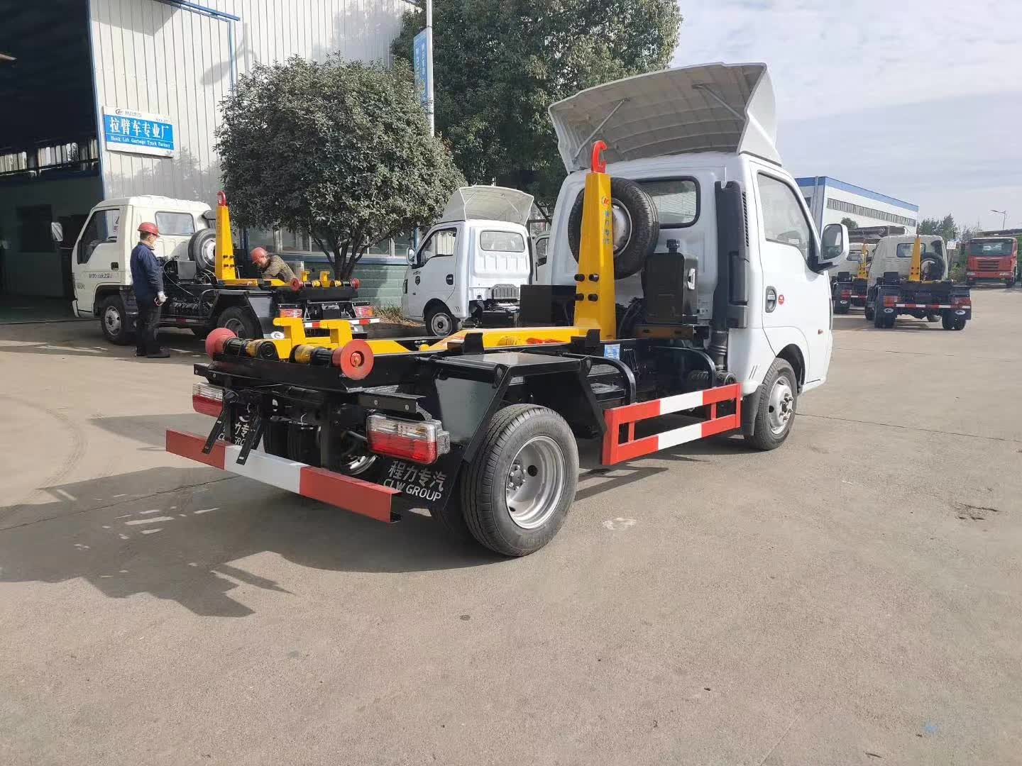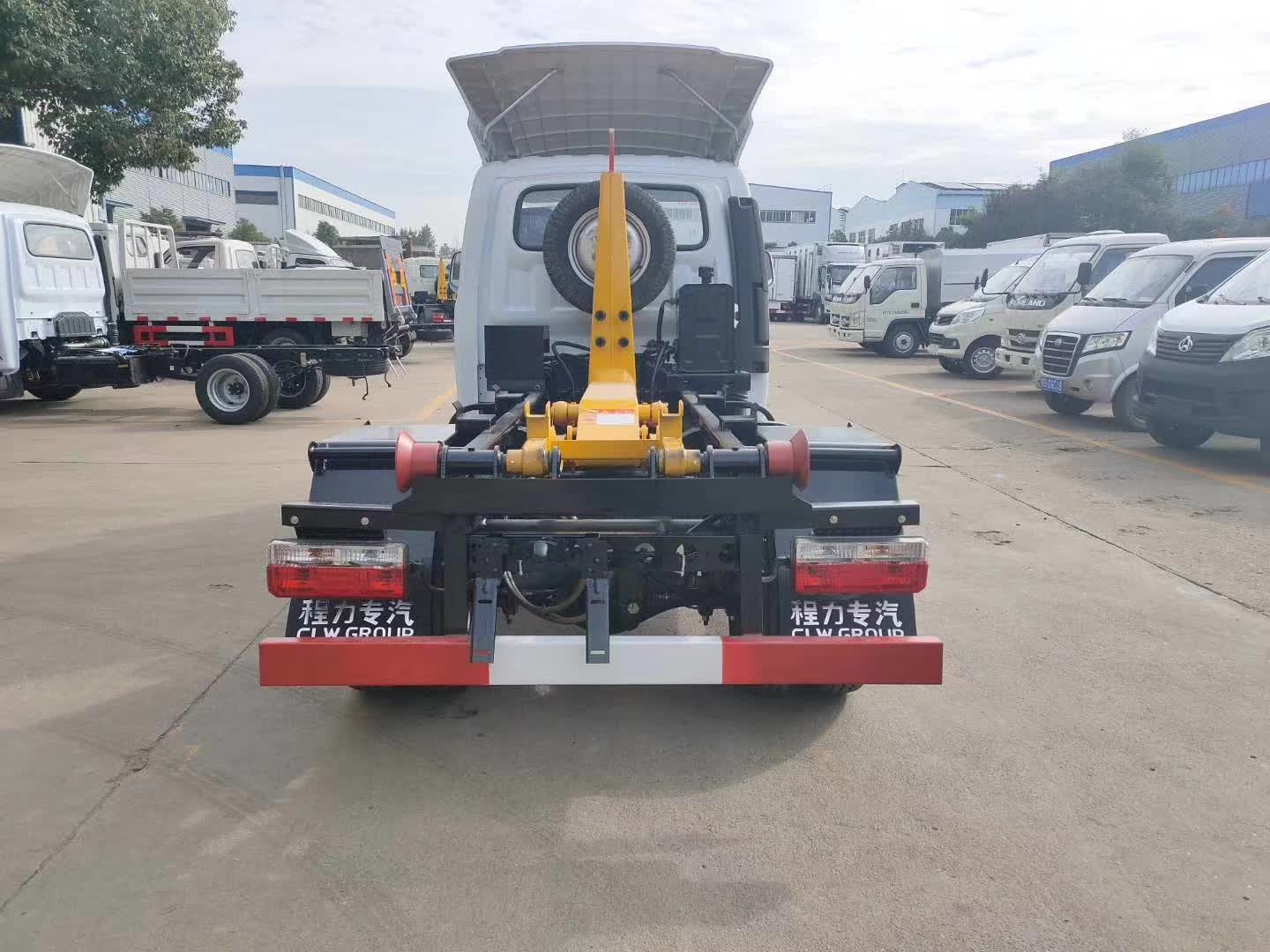 勾臂垃圾車標配:由液壓系統、操作系統、拉臂,組成。舉升油制缸為國內知名液壓件廠家生產的雙作用油缸,多路閥液壓控制,操作員手動控制垃圾廂吊上放下,帶自卸功能,上下一次工作循環時間≤40秒。垃圾箱冷板壓制垃圾箱,帶后門密封圈,帶金屬滾動輪。